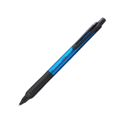 筆記振動を防ぐ「ブレンシステム」と軽い力で濃い「S油性インク」を搭載。