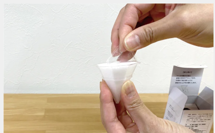 使い方もカンタンで、本体上面のシールをゆっくりとはがし、お皿を上からかぶせ本体を押さえながら上下を返します。