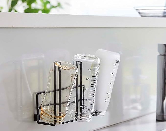 そこでおすすめなのが、山崎実業のフィルムフックグラス&ボトルホルダーです。