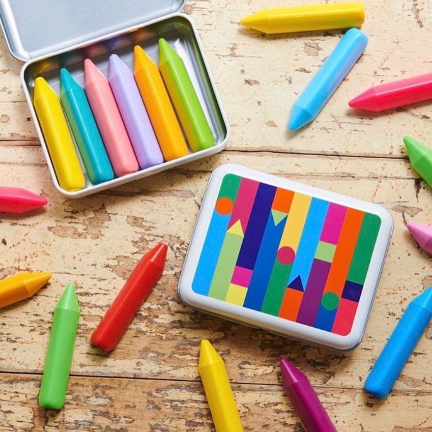 レトロでかわいいクーピー柄の缶ケースとクーピーマー カー3本のセット。ノートや手帳のデコレーションに最適です。