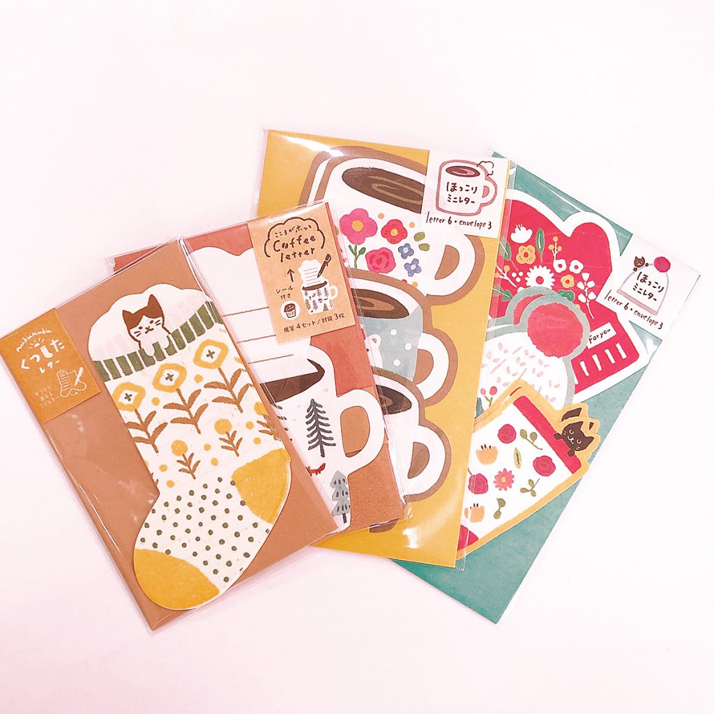 ④古川紙工 冬柄レターセット(ほっこりレター・くつ下レター・カフェレター)