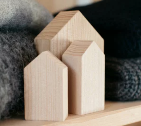 シダーの木が大・中・小3つのお家の形にカットされています。クローゼットの中や寝室、リビングに。シダーそのものの香りで天然の虫除けとしてご利用いただけるアイテムです。