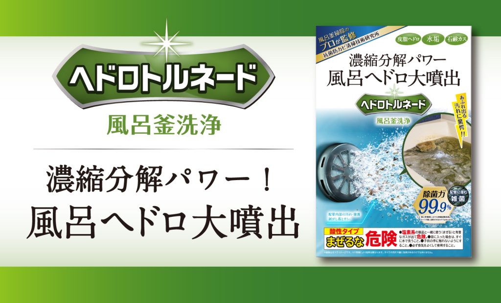 ヘドロトルネードは、2種類の洗剤で風呂釜内部の汚れを徹底的に除去してくれる洗浄剤です。 「A剤」で剥離・除菌、 「B剤」で洗浄・漂白を行うWアプローチ方式で、 長年蓄積したヌメリや皮脂汚れをしっかり落とします。 さらに、第三者機関によるテストで 99.9%の除菌力が実証済み! 一般社団法人「抗菌防カビ清掃技術研究所」の監修付きという信頼性も抜群です。