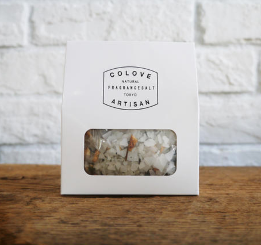 ミネラルを大量に含んだ死海の塩をエッセンシャルオイルに浸し、原産地から厳選して取り寄せたハーブとバランスよく配合した「フレグランスバスソルト」。