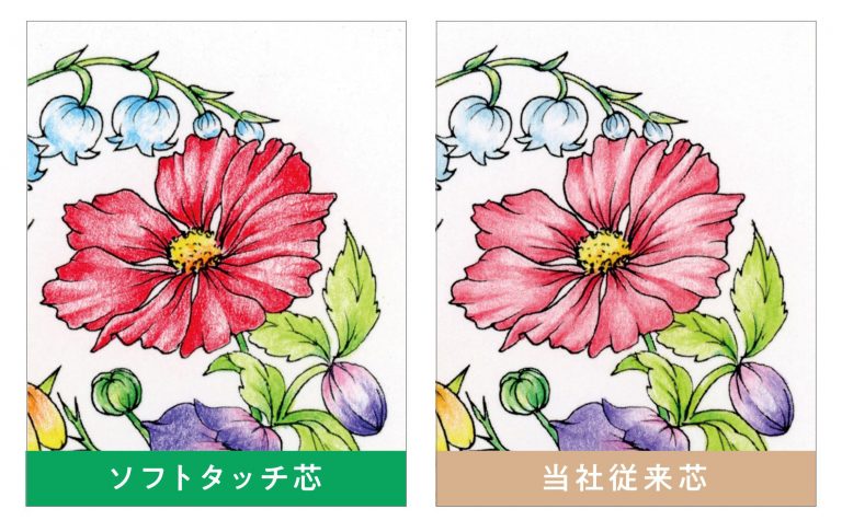 ひと塗りで約30%濃く塗れる「ソフトタッチ芯」を新たに採用しており、なめらかな書き心地を実現したい方にもピッタリです。