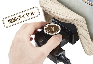 温度調節は見やすいダイヤル式。保温から約230℃まで無段階調節が可能なので、幅広いレシピが楽しめます。