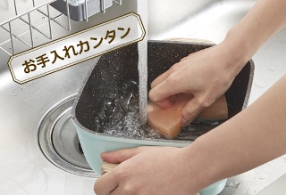 パーツが少ないため、電源コードを外して鍋を洗うだけでお手入れ終了。焦げ付きにくいふっ素加工は、汚れが落としやすくて◎(※つけおき洗い不可)