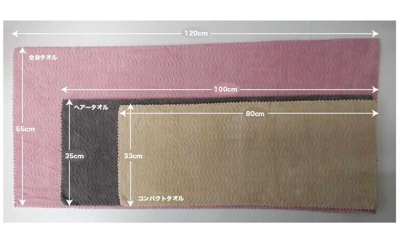 吸水美神タオルは、用途に合わせて3つのサイズを展開しています。