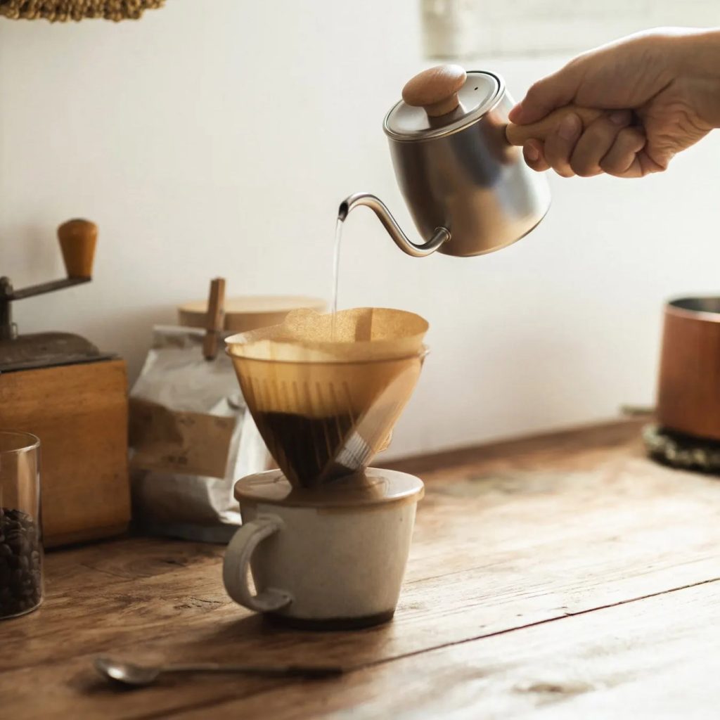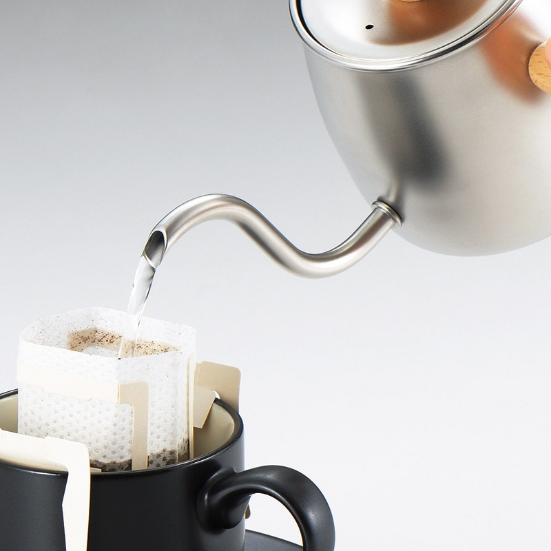 お湯をゆっくり細く注ぐことができるので、コーヒー豆本来のうまみを抽出できるのも◎