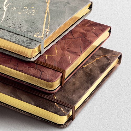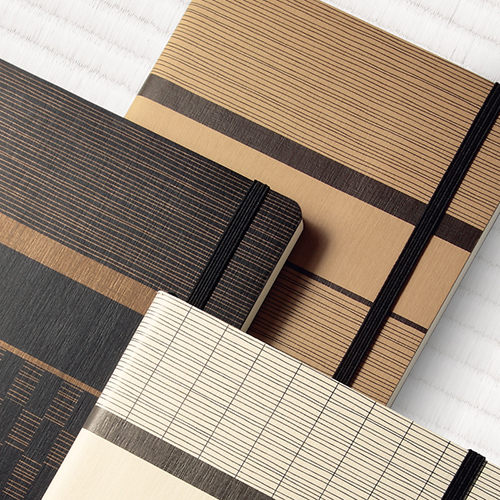 そのデザインは幅広く、表紙の素材もさまざま。また『WABI SABI』『TATAMI』など和のテイストを取り入れたシリーズがあるのも大きな特徴。