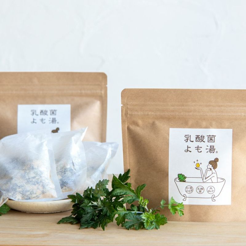 乳酸菌よも湯は、古くから親しまれてきたよもぎと、健康成分として注目されている乳酸菌を組み合わせた入浴剤です。