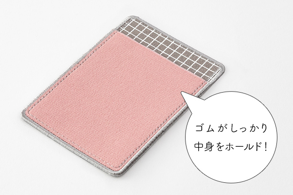 MIDORI「ポケットシールのびる」は、ポケット表面にゴム生地を使用し、名刺1枚からペンなど厚みのあるものまでしっかりとホールド。ふたがなくても中身が落ちる心配がありません♪♪