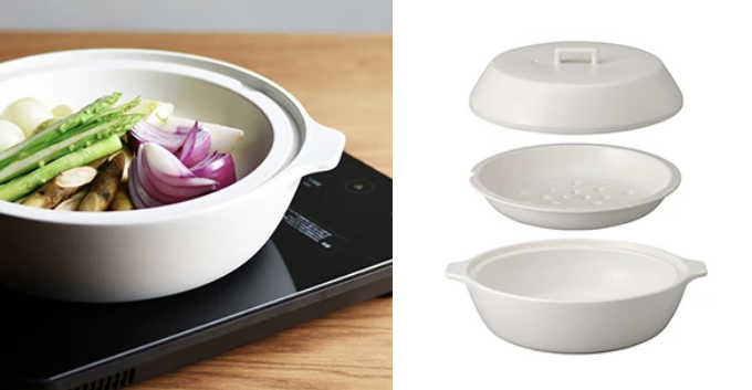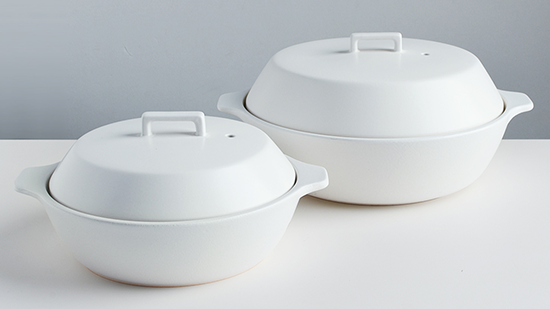 「KAKOMI」は、ガスレンジでの直火調理はもちろん、IH調理器、ハロゲンヒーター、ラジエントヒーター、電子レンジ、オーブンでも使える、マルチ対応の土鍋。
