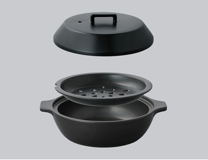 蒸し料理は、鍋本体に水を入れて付属のすのこをセットし、火にかけるだけの手軽さ。