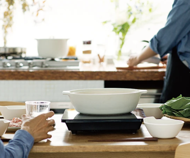 IH 調理器を使えば、食卓で調理をしながら食べる囲み料理の際、デーブルまわりが熱い空気になりません。
