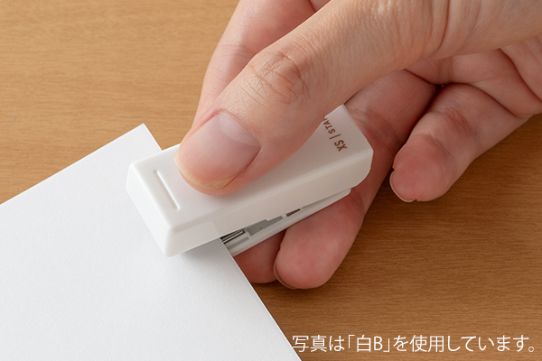 コンパクトな見た目からは想像できないほど安定感があり、紙をしっかり綴じられるのもポイントです。 デザインフィル XS-リニューアル-ホッチキス.jpg)