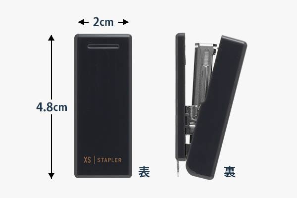 一般的なホッチキスと比べても圧倒的に小さく、ペンケースやバッグの隙間にも無理なく収まります。
