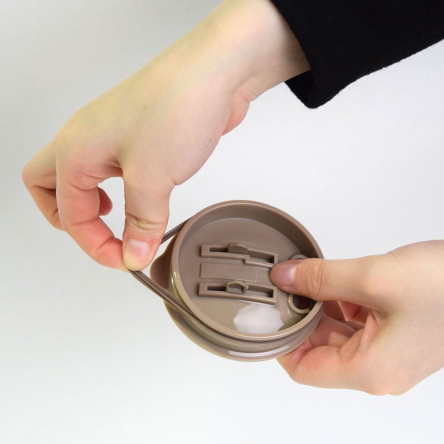 フタの裏にはパッキンが付いているため、オフィスや家の中で移動する際もこぼれる心配はありません。