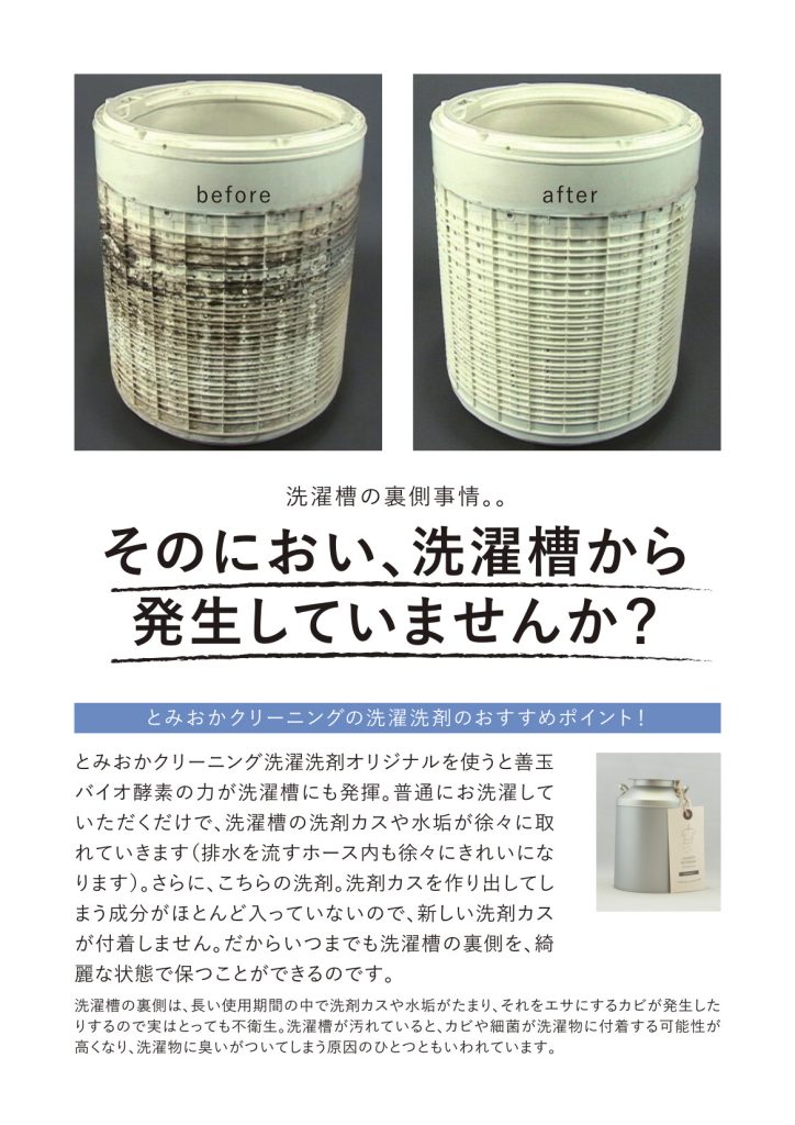 とみおかクリーニングオリジナルのミルク缶入り粉末洗剤なら安心です。