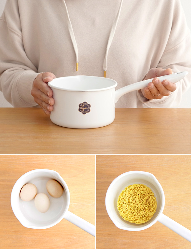 1人分のインスタントラーメンを作ったり、2分のスープやお味噌汁を作ったりと重宝しそうなミルクパンは使いやすいだけでなく、見た目もかわいいです。