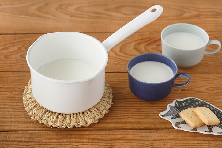 においや色が付きにくい、琺瑯製のこのミルクパン。